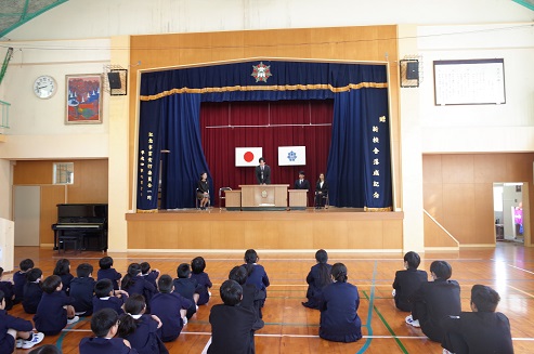 小中合同で行い、今回の講師・自衛隊の方々から災害に関して、いろいろな教えを受けました。